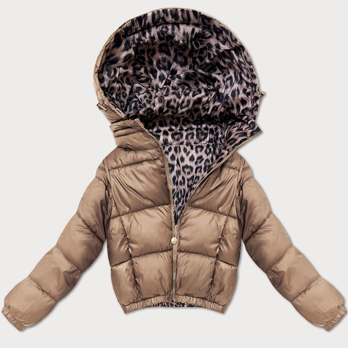 Dwustronna krótka kurtka damska Minority brązowa panterka (M6-6001-305)