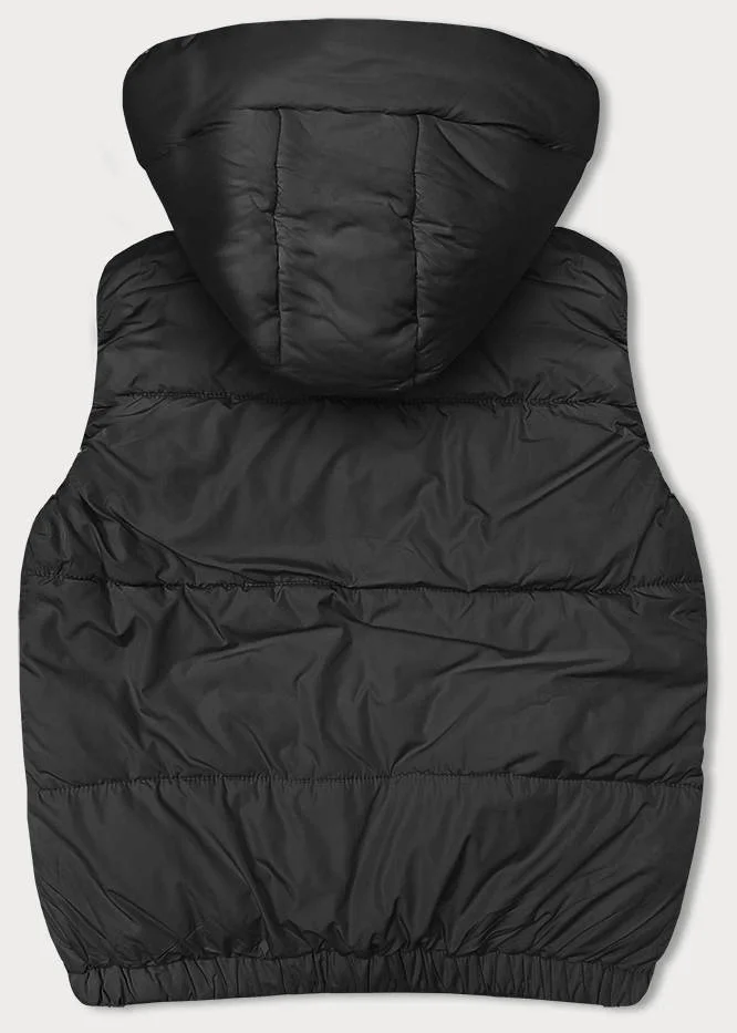 KRÓTKI PUCHOWY BEZRĘKAWNIK DAMSKI Z KAPTUREM CZARNY (16M9091-392)