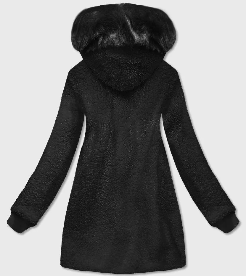 KURTKA DAMSKA Z KAPTUREM BARANEK CZARNA (H-1030-01)