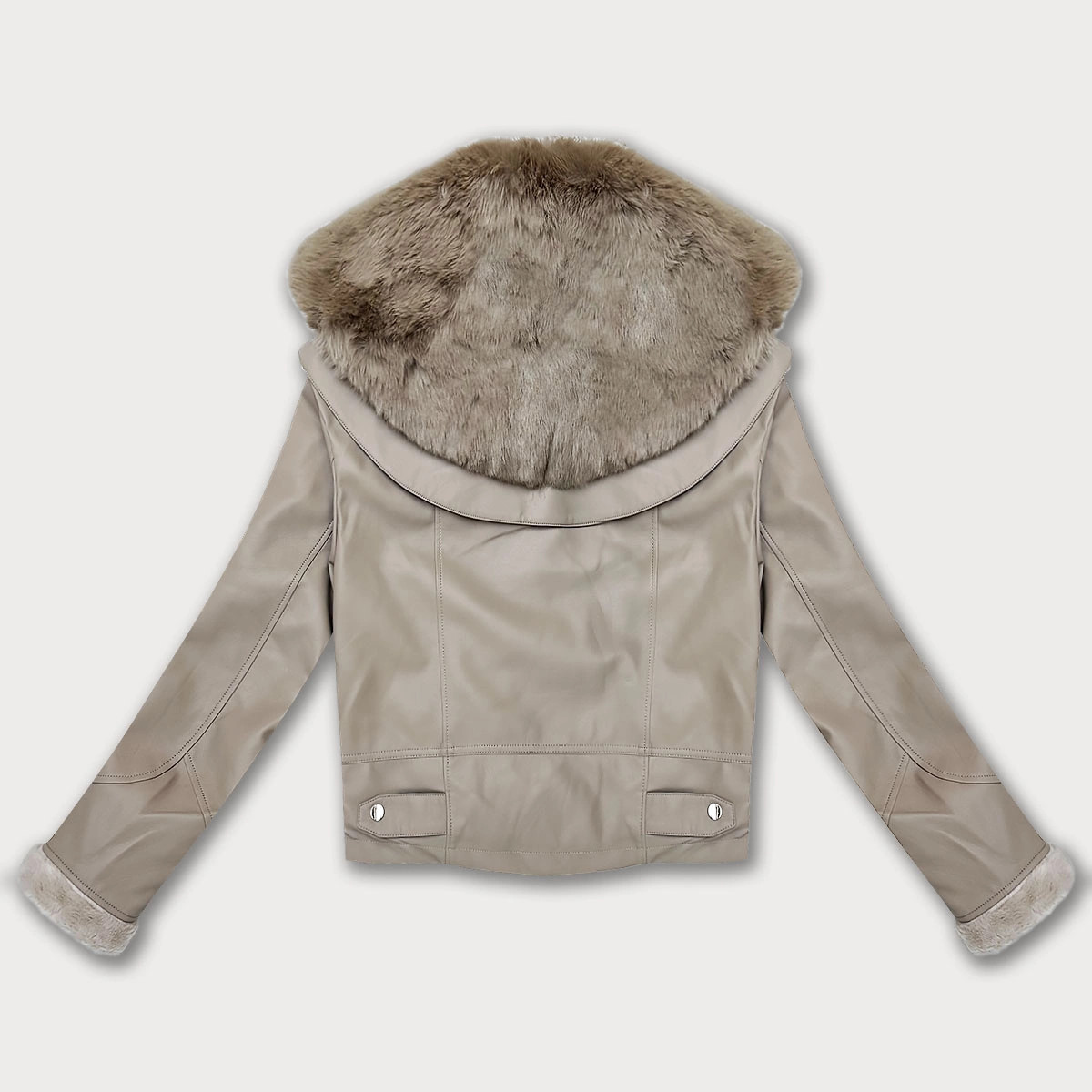 Zašlite nám Váš dotaz - Kurtka ze skóry ekologicznej z futrzanym kołnierzem Glakate beżowa (LU98091#)