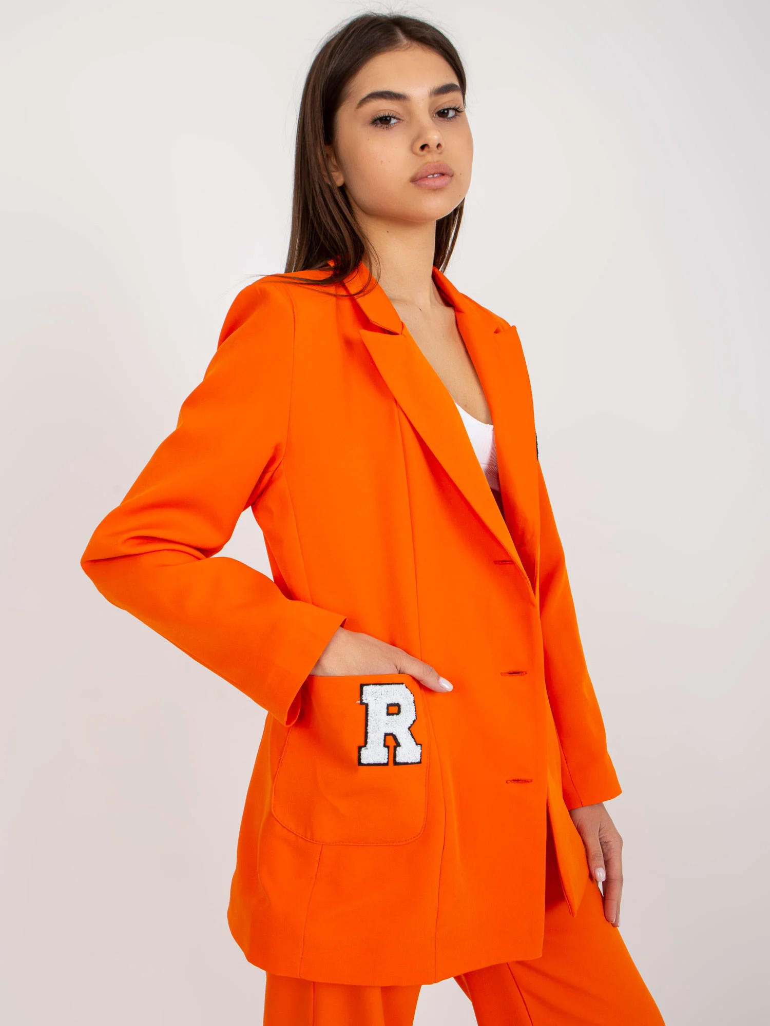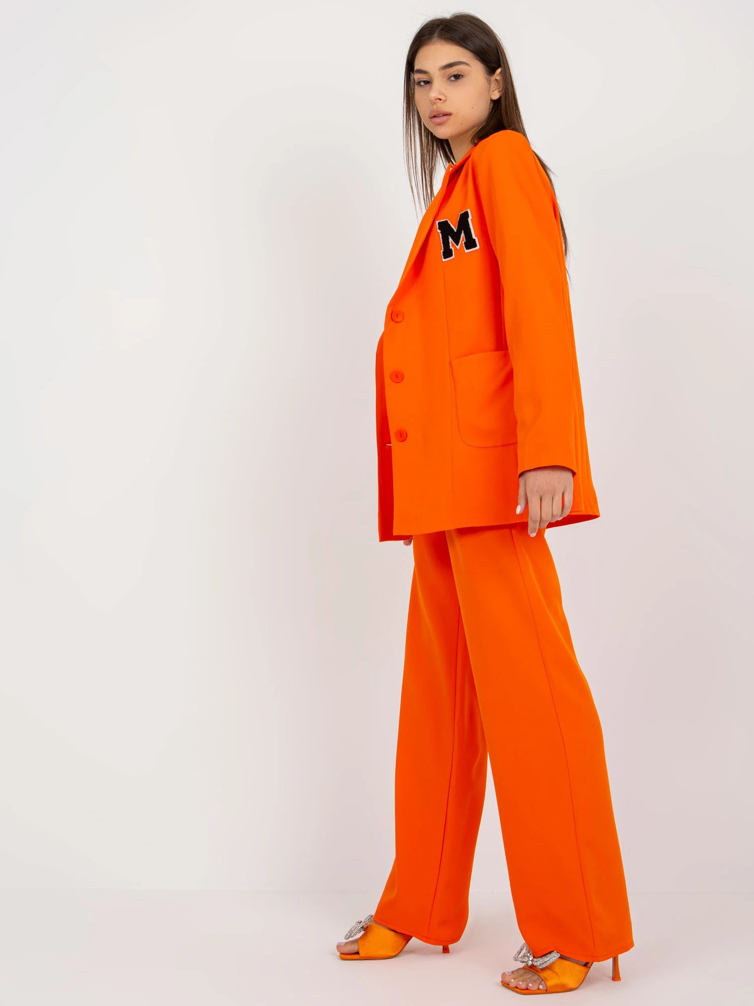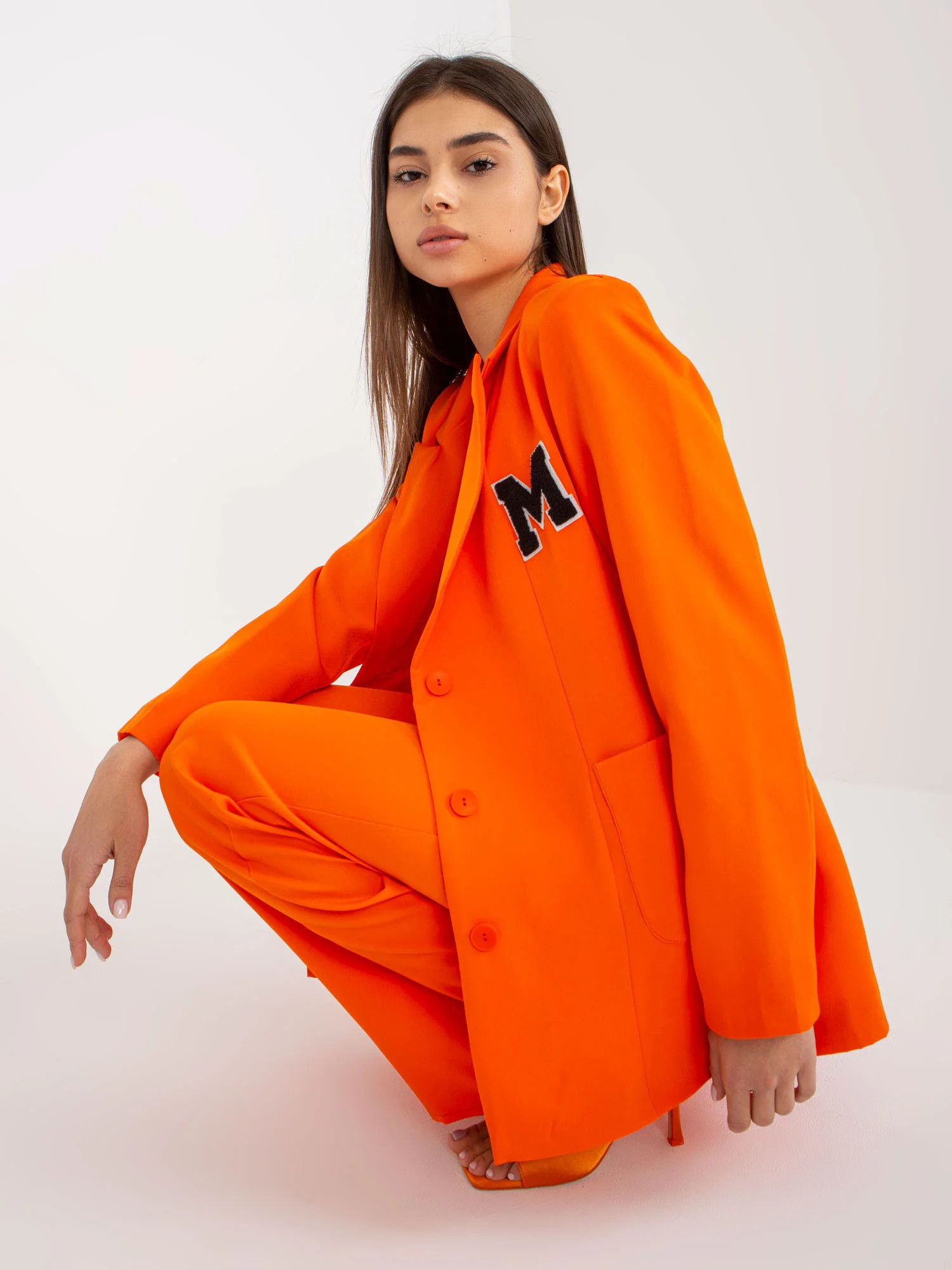 Modelka má na sebe veľkosť 1. Rozmery modelu: výška 172 cm, prsia 88 cm, pás 61 cm, boky 92 cm