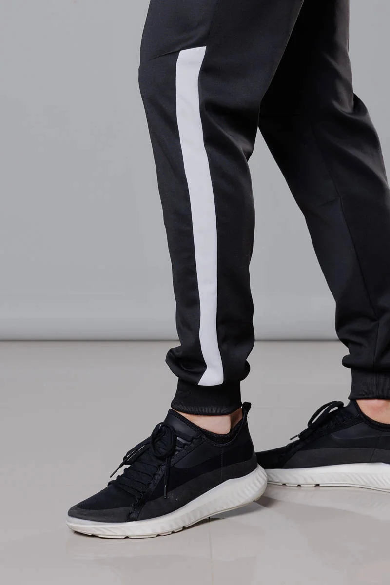 Čierno-biele pánske teplákové nohavice so vsadkami (8K172)