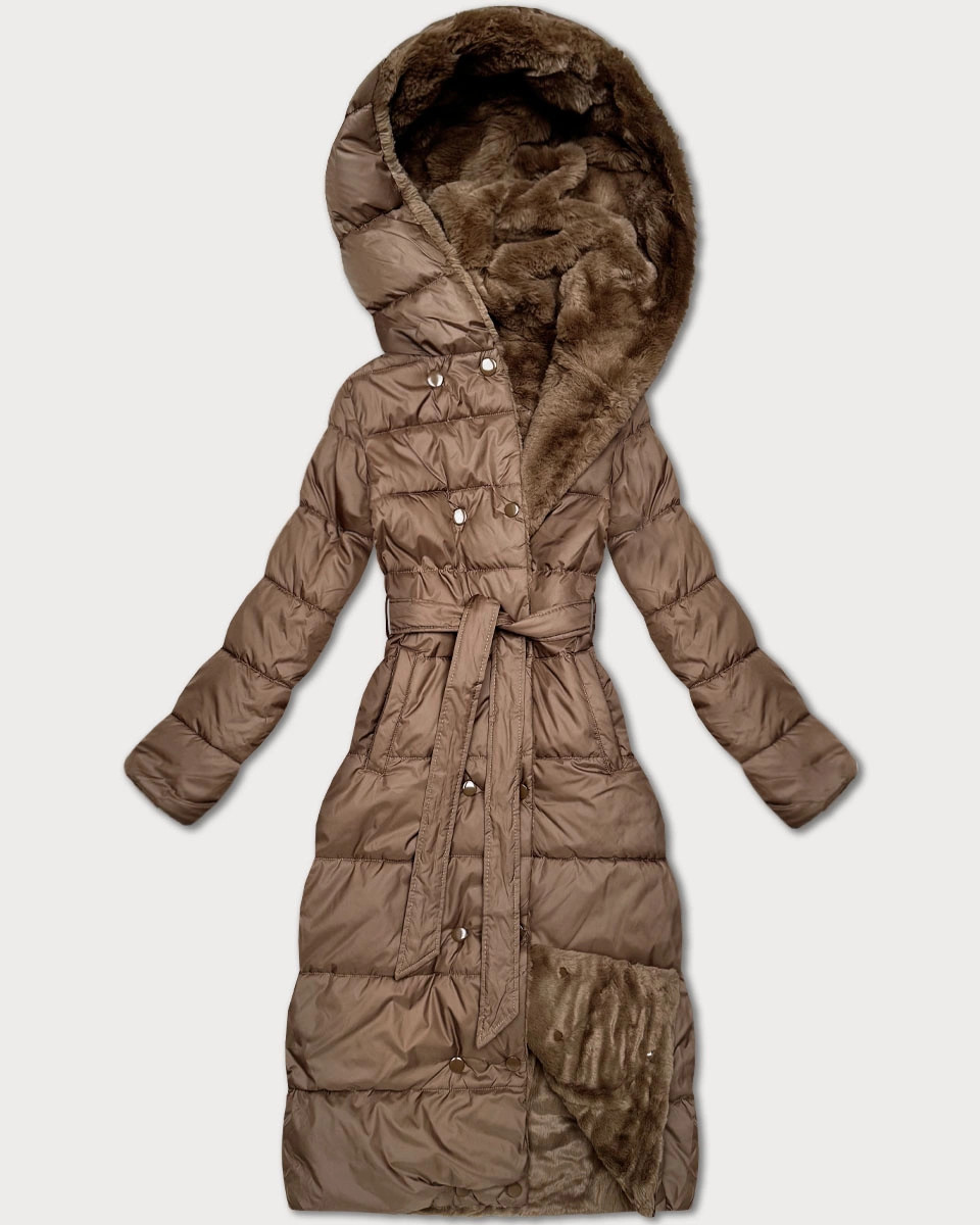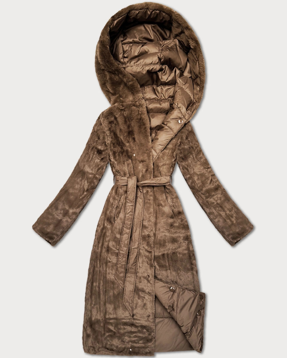 Minoritská hnedá obojstranná kožušinová zimná bunda (P3-6020-305)