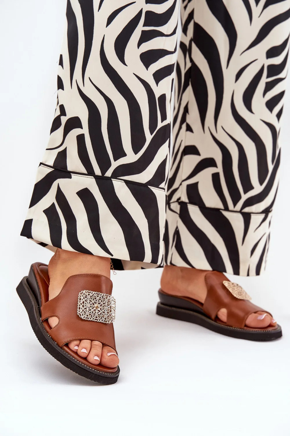 Tieto dámske sandále od značky Jezzi, vyrobené z ekokože, sú dokonalou kombináciou štýlu a pohodlia. Zlaté zdobenie na prednej strane im dodáva eleganciu a jemný šarm. Vďaka platforme tieto sandále zaručujú pohodlie a stabilitu pri chôdzi a mäkká stielka poskytuje pohodlie počas celého dňa. Vďaka ľahkej konštrukcii sú neuveriteľne pohodlné, ideálne na letné dni a skvelé na každodenné štylizácie aj elegantnejšie príležitosti.
