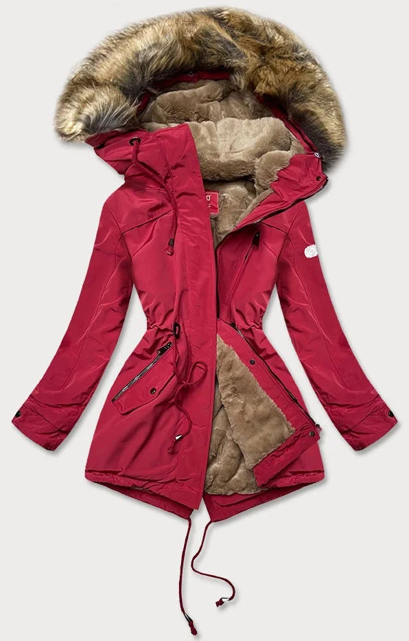 PARKA DAMSKA Z FUTRZANĄ PODSZEWKĄ CZERWONA (M-21207)