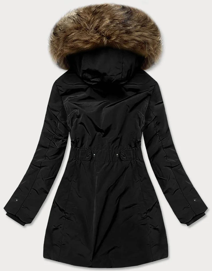 PARKA ZIMOWA DAMSKA NA FUTRZE CZARNA (M-21501)