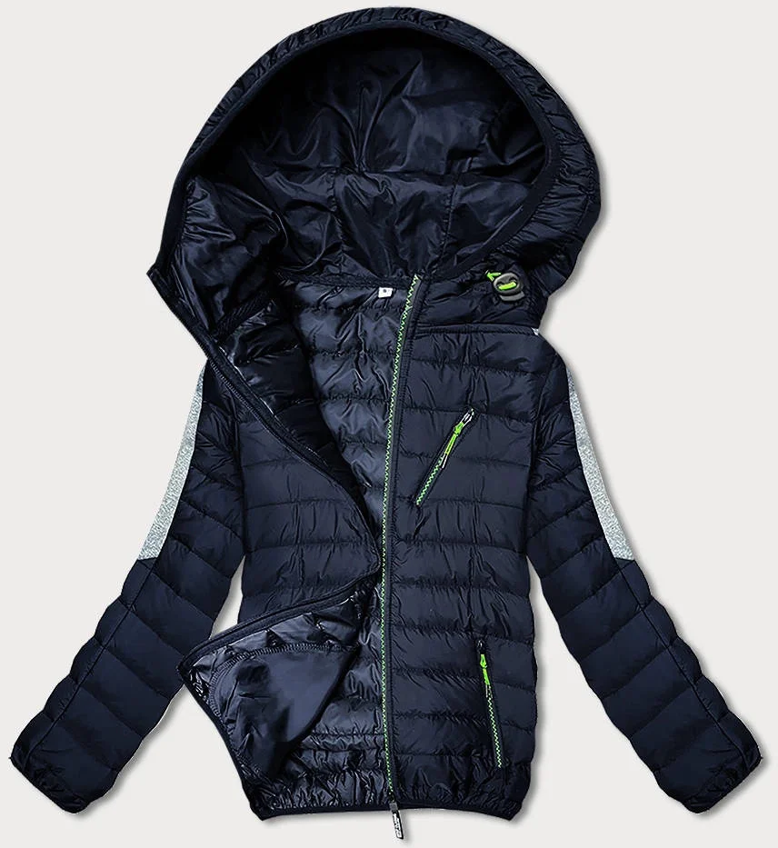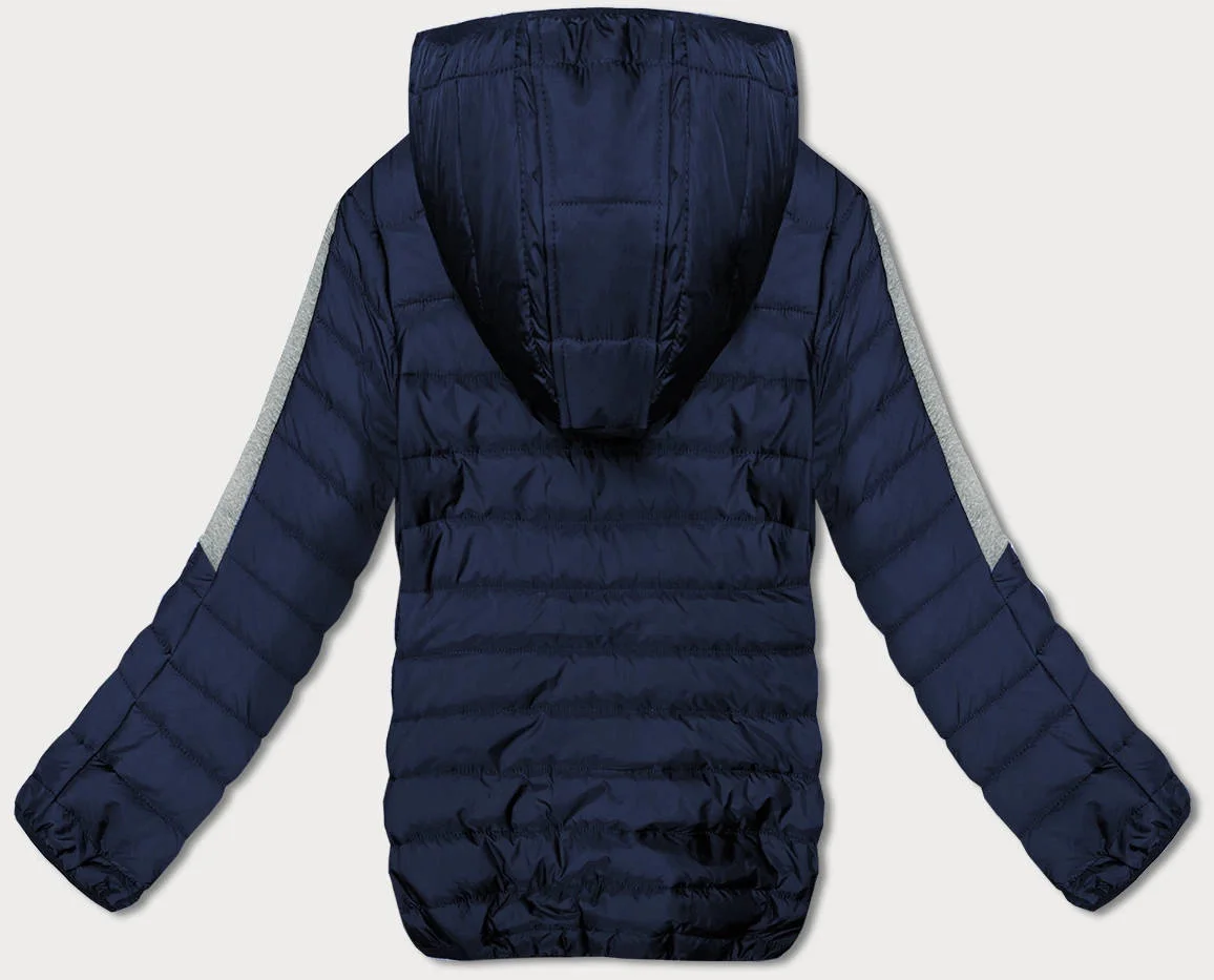 Tmavo modro-šedá prešívaná dámska bunda s kapucňou (8M912-215)