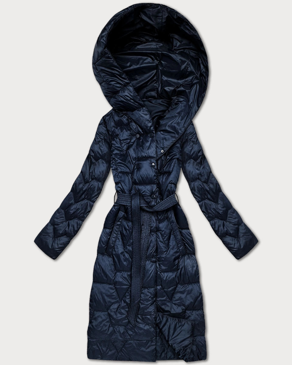 Zašlite nám Váš dotaz - Pikowany płaszcz z paskiem Libland granatowy (LD-7806)
