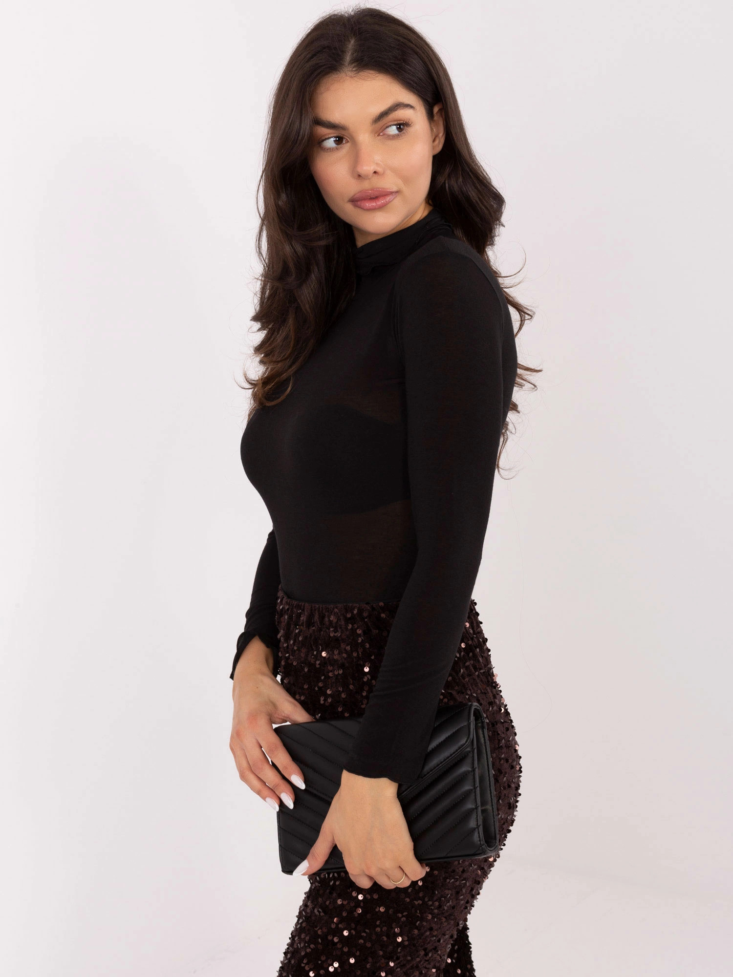 Priliehavá kašmírová blúzka s rolákom čierna (21819)