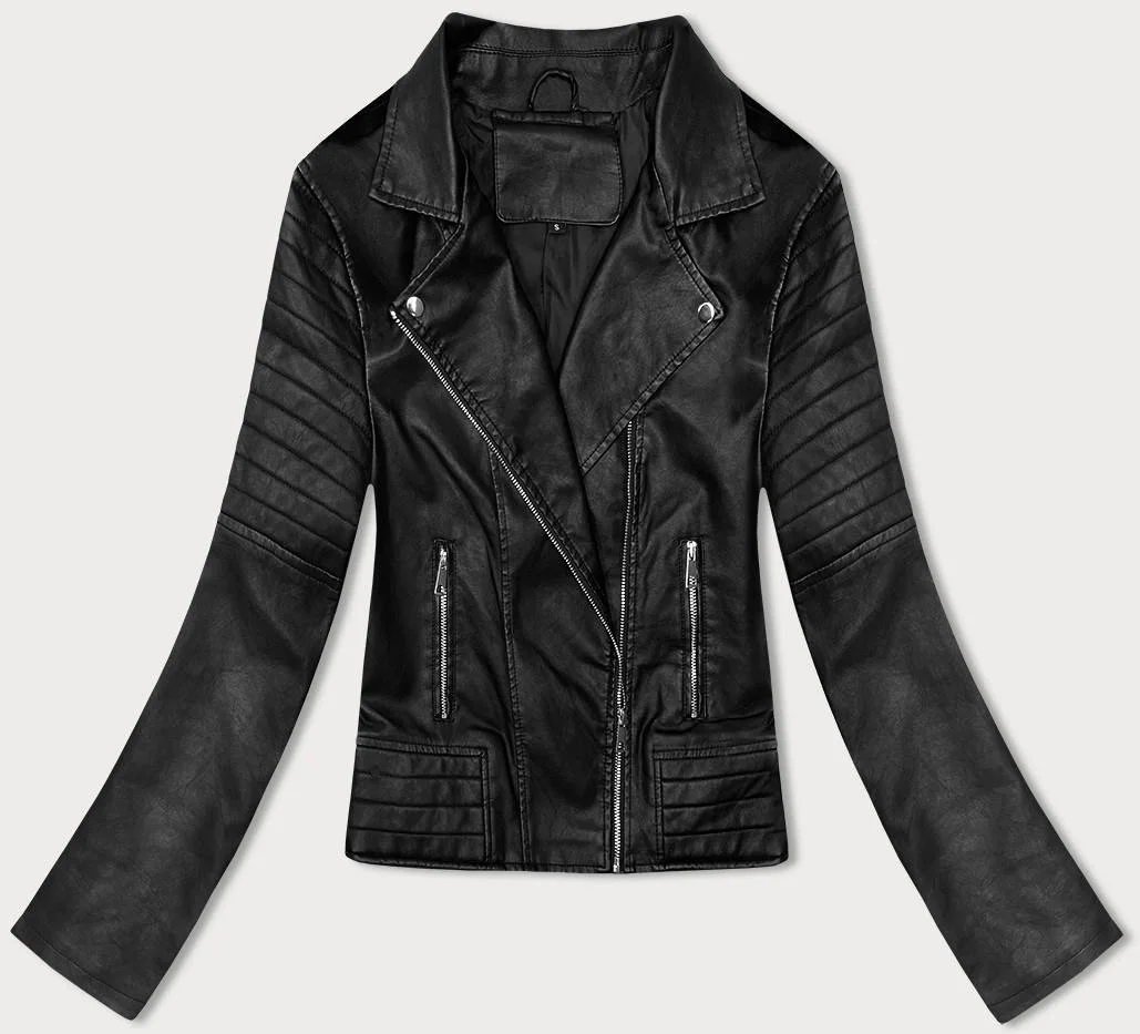 Čierna dekoratívna bunda z ekokože (G85)