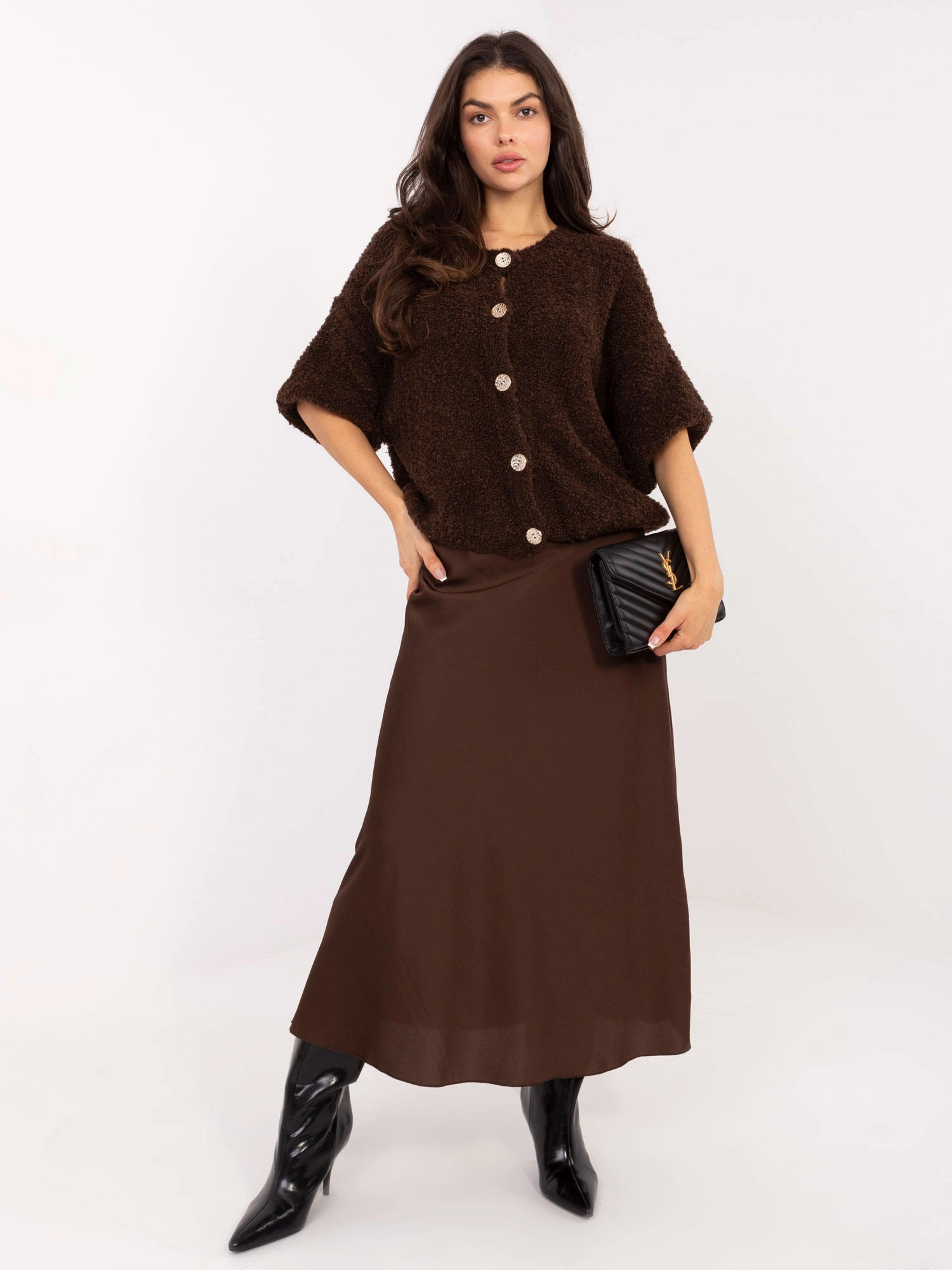 Pridanie recenzie k Saténová hnedá maxi sukňa (A2797)