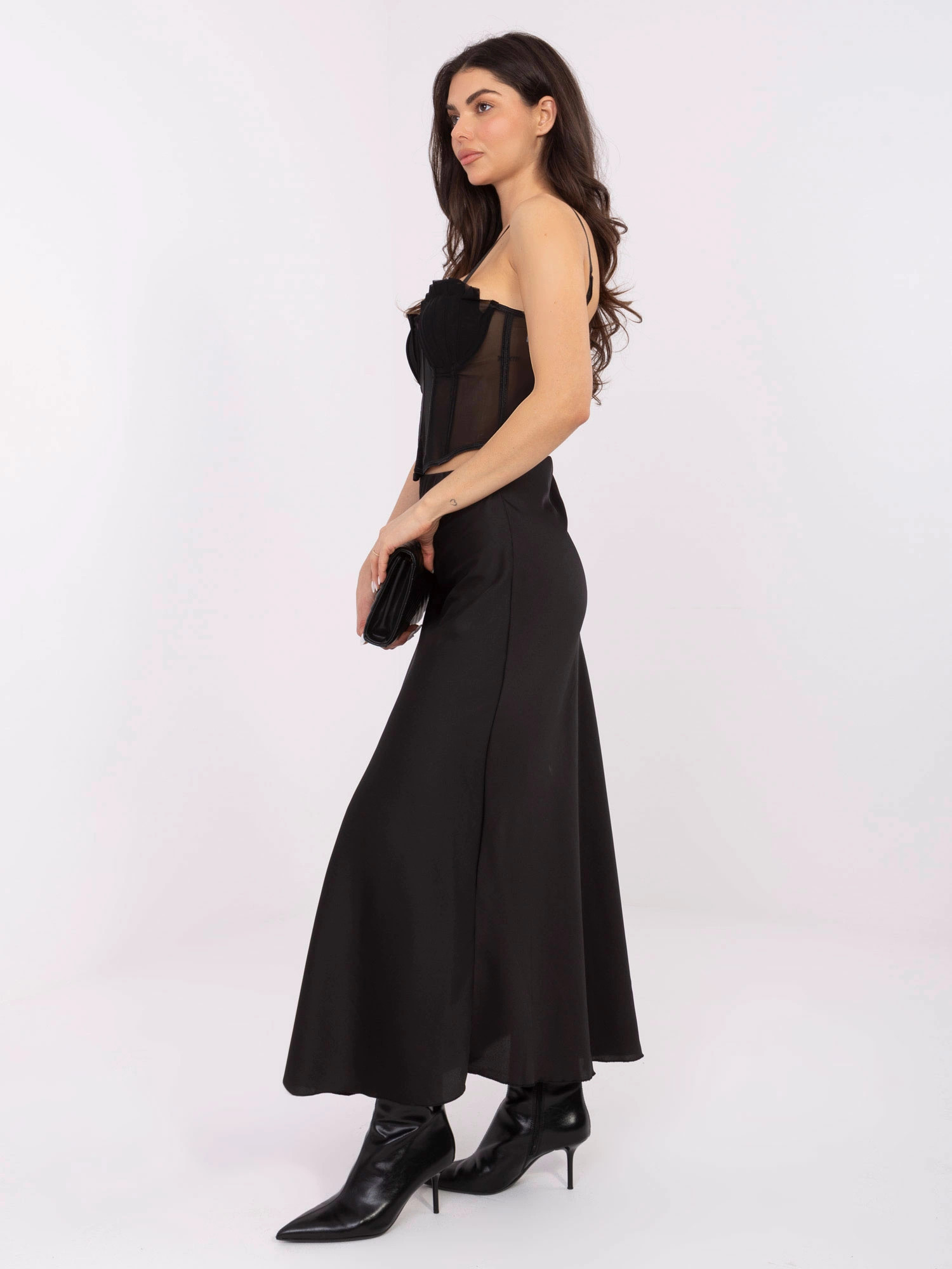 Saténová maxi sukňa čierna (A2797)