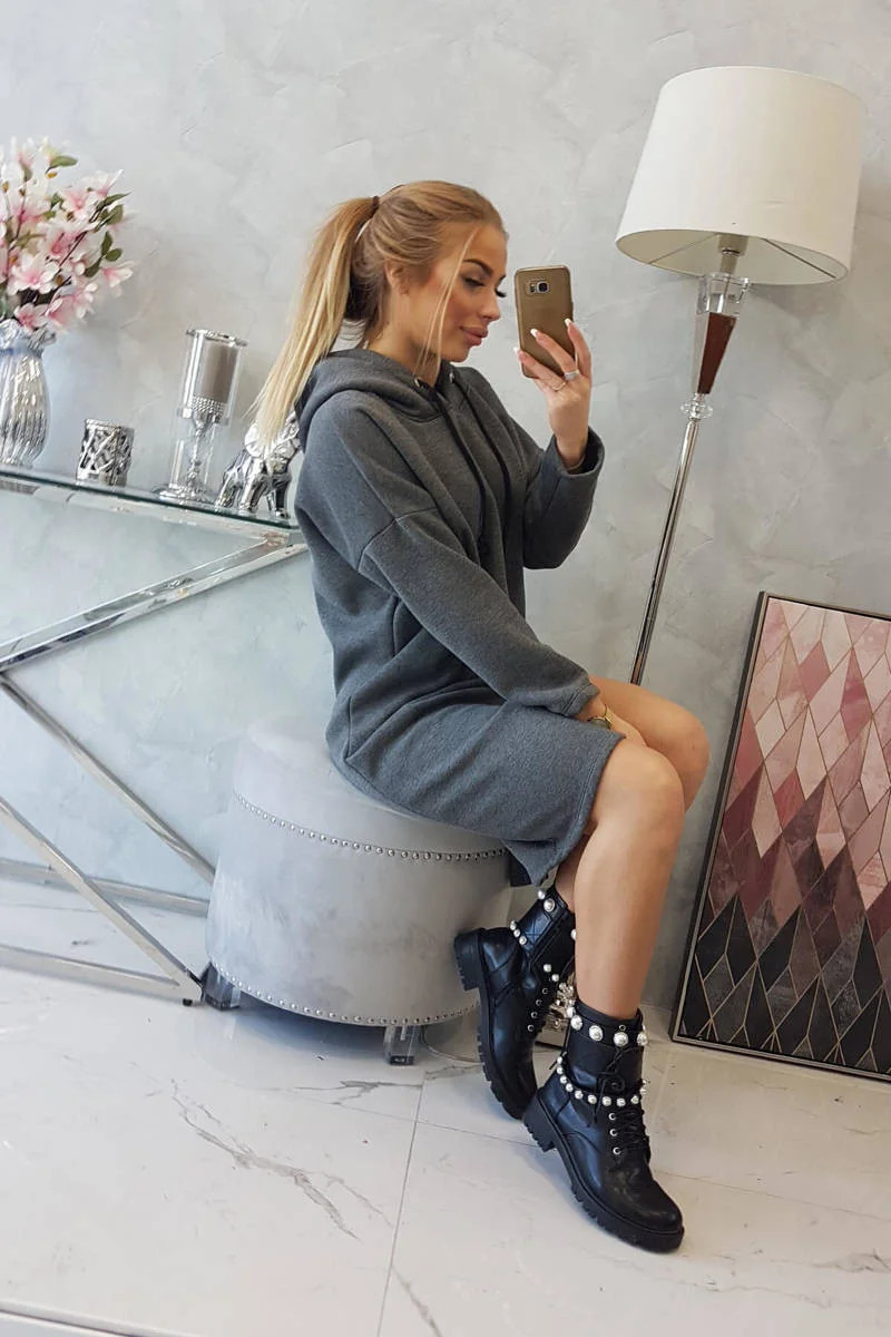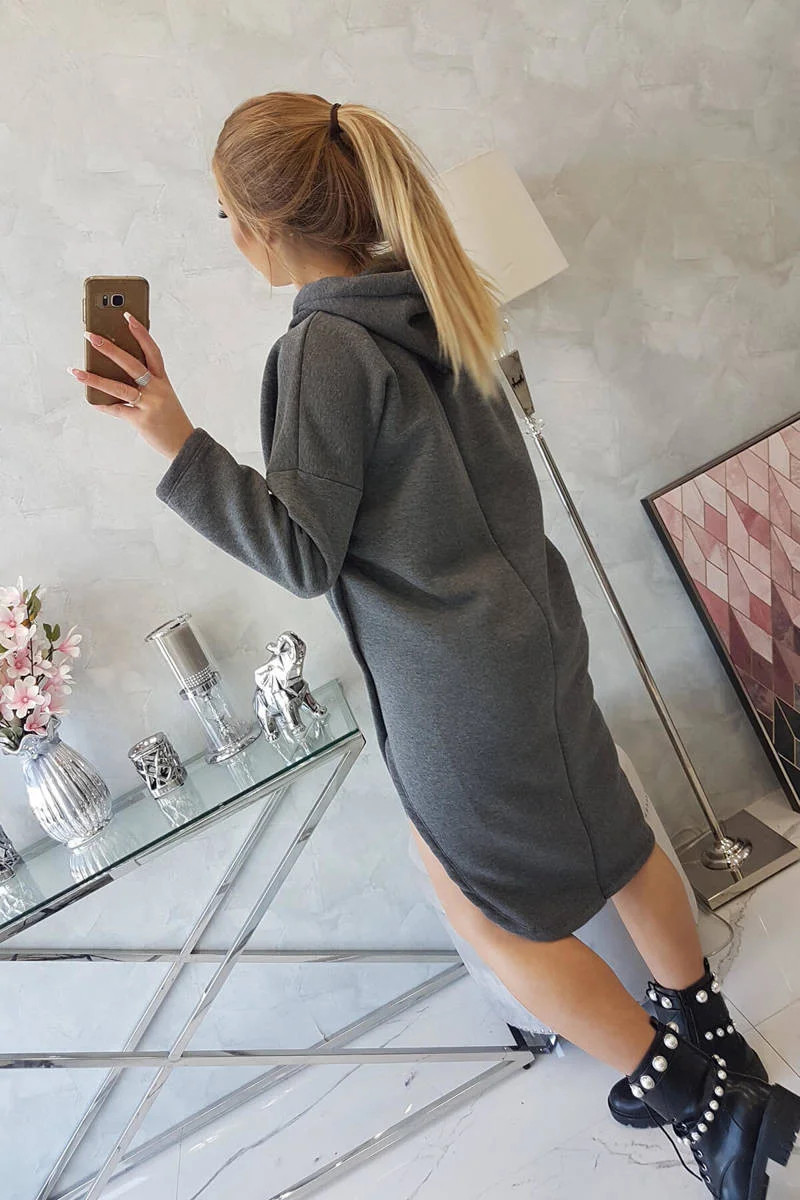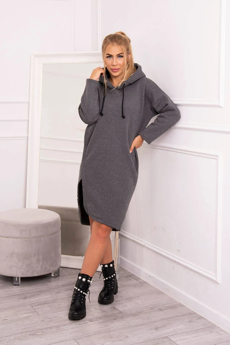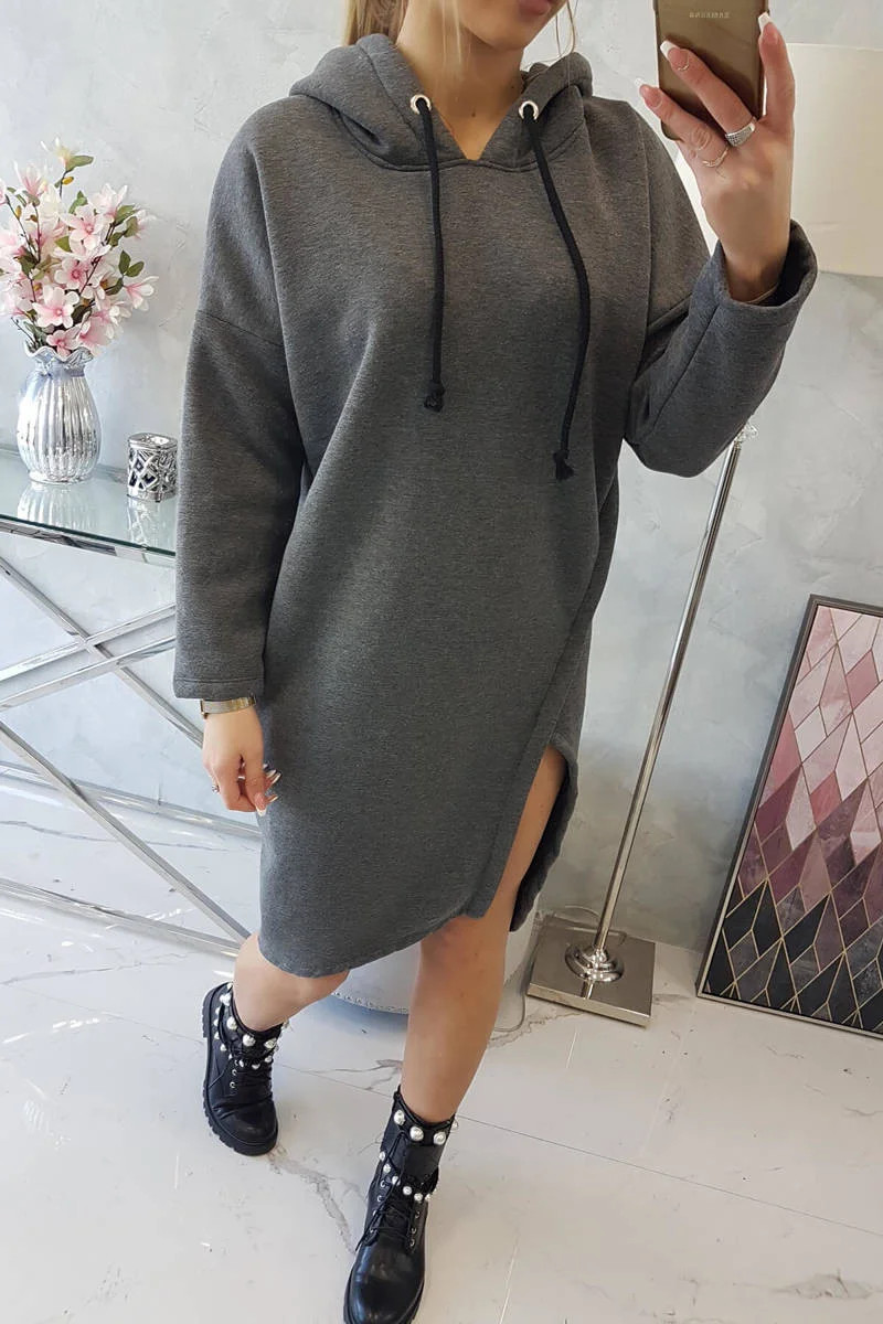 Šaty s kapucí a bočním rozparkem tmavě šedé