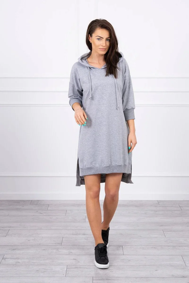 Šaty s kapucí a delšími zády šedé