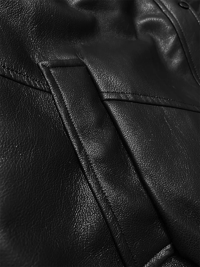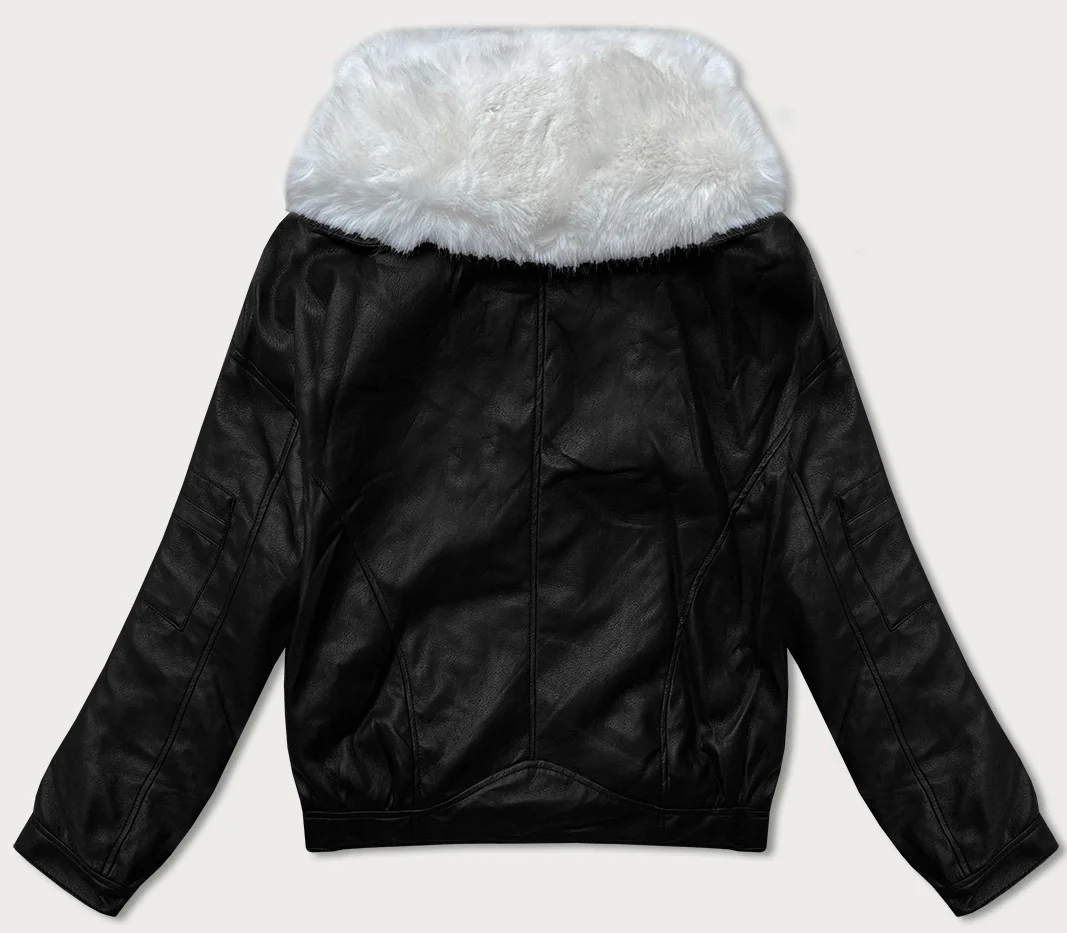 Skórzana kurtka z dużym futrzanym kołnierzem Glakate czarno-biała (LU98090#)