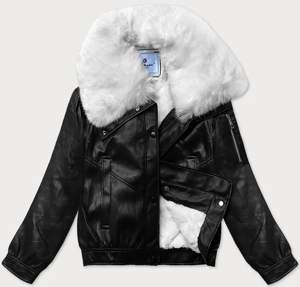 Zašlite nám Váš dotaz - Skórzana kurtka z dużym futrzanym kołnierzem Glakate czarno-biała (LU98090#)