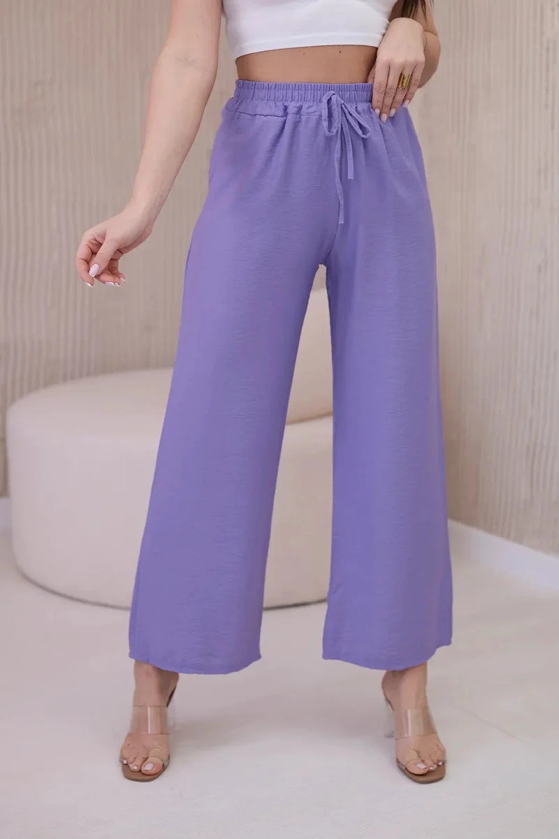 Široké nohavice z viskózy sú jedinečným kúskom oblečenia, ktorý spája pohodlie a eleganciu. Tieto nohavice sú vyrobené z ľahkého a vzdušného viskózového materiálu a zaručujú nielen voľnosť pohybu, ale aj pocit ľahkosti a sviežosti počas celého dňa. Široké nohavice dodávajú nohaviciam charakteristický, voľný strih, ktorý je módny a pohodlný. Vďaka tomuto prvku vyzerajú nohavice mimoriadne štýlovo a pôsobivo a dodajú každému štýlu originalitu. Vďaka univerzálnemu dizajnu širokých nohavíc sú vhodné na rôzne príležitosti a štýly. Môžete ich nosiť ku každodennému ležérnemu oblečeniu, ako aj k elegantnejším outfitom na obchodné stretnutia alebo večerné prechádzky. Široké nohavice z viskózy sú ideálnou voľbou pre ženy, ktoré ocenia pohodlie a štýl. Vďaka svojmu univerzálnemu dizajnu a kvalitnému spracovaniu sú tieto nohavice nenahraditeľným kúskom šatníka, ktorý dokonale doplní každú zbierku oblečenia. Veľkosť je univerzálna a je vhodná pre ženy, ktoré nosia veľkosť S, M alebo L.