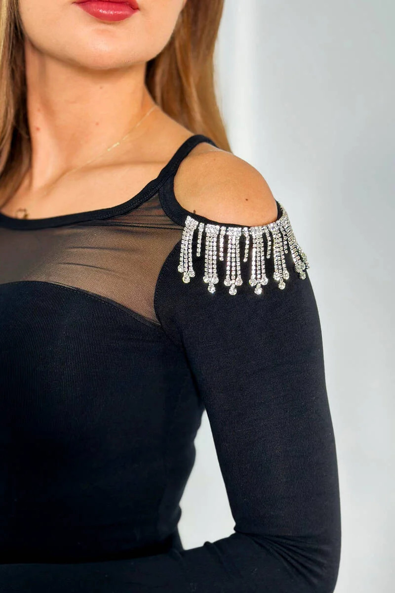 Viskózové šaty se síťovinou model 19049184 černý - K-Fashion