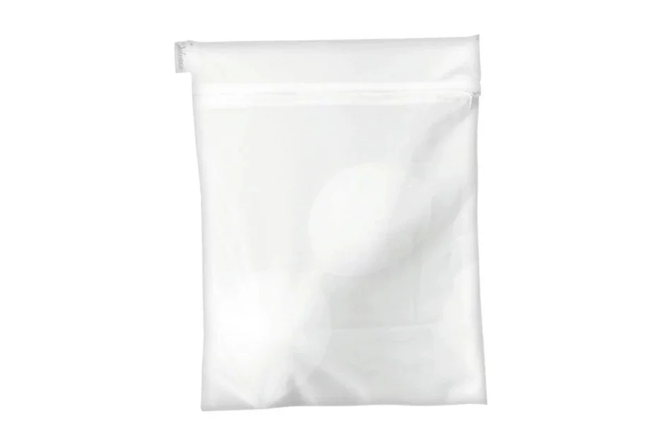 Vrecko na pranie spodnej bielizne so zapínaním na zips az kvalitných odolných materiálov o veľkosti 20 x 30 cm. Umožňuje voľný priechod vody a pracích prostriedkov. Dokonale chráni bielizeň pri praní v práčke, bráni jeho zničenie a deformácii.