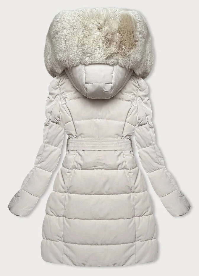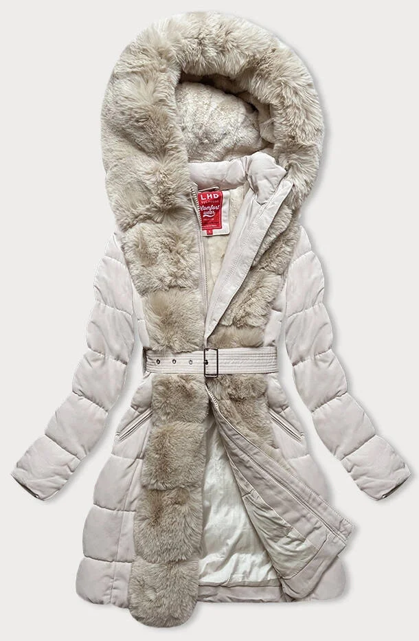 ZIMOWA KURTKA DAMSKA Z FUTREM ECRU (2M-008)