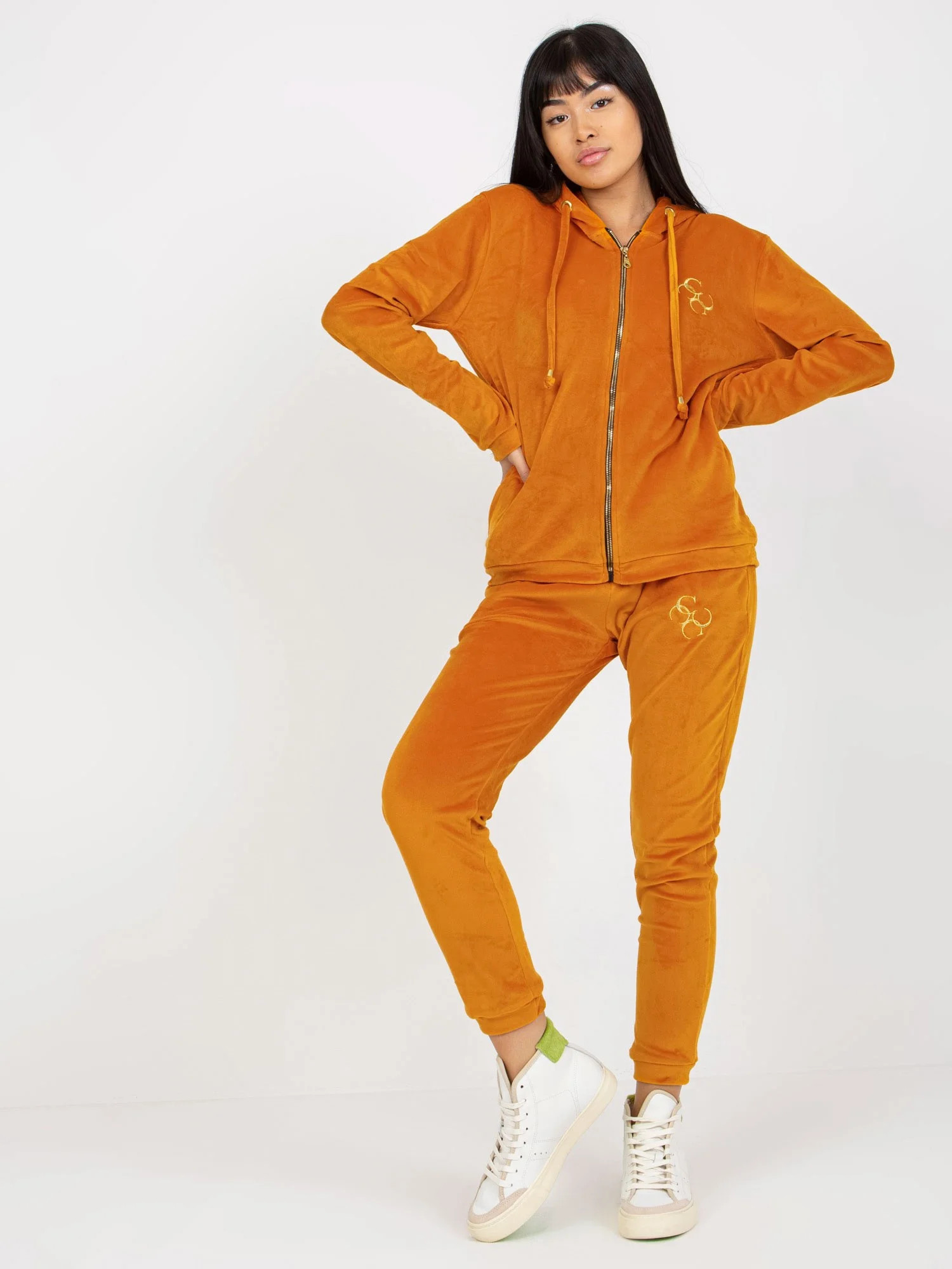 Dámská tepláková mikina v hořčicové barvě se stahovacími lemy model 17038472 - J.STYLE