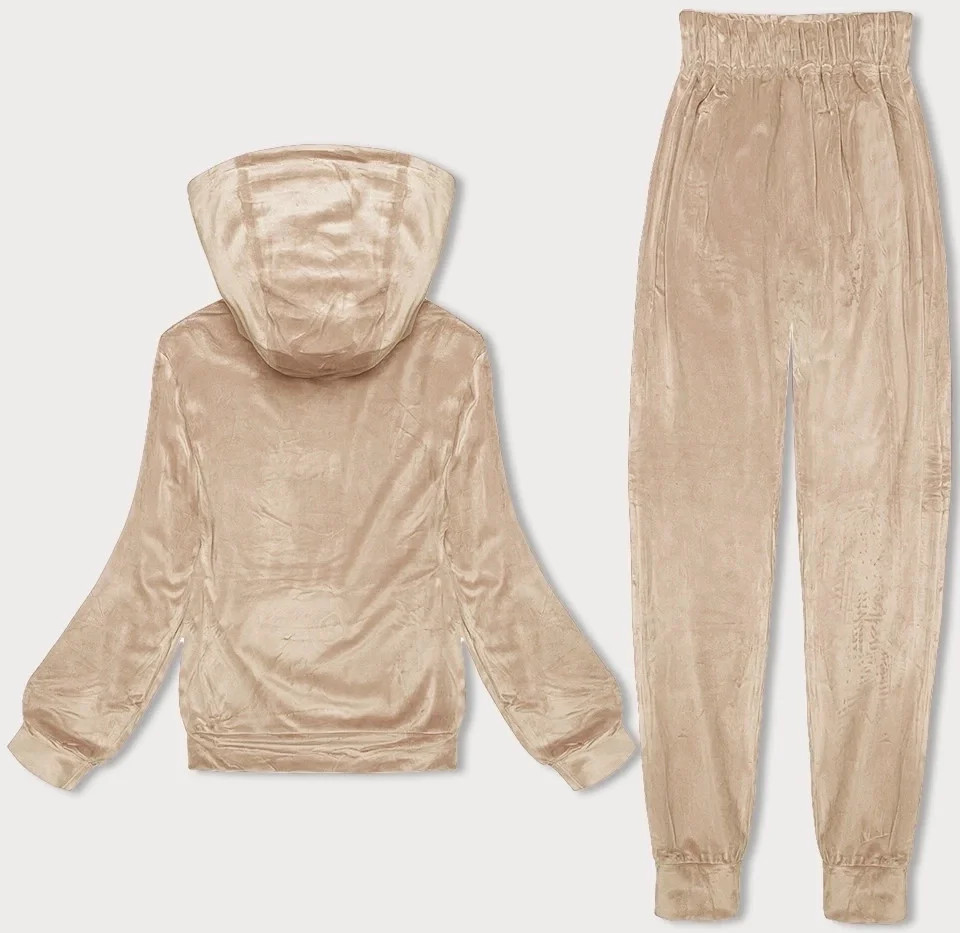 Světle béžová dámská velurová souprava s kapucí model 19387513 - J.STYLE