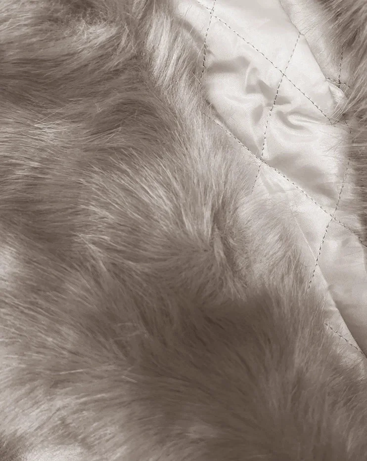 Bunda je lehce zateplená syntetickou péřovou výplní a má dvě kapsy se zapínáním na zip. Model má kožešinový límec (kožešinu není možné odepnout). Bunda má všité pásky pro zavazování, které jsou jediným způsobem zapnutí modelu. Bunda má délku do pasu.
