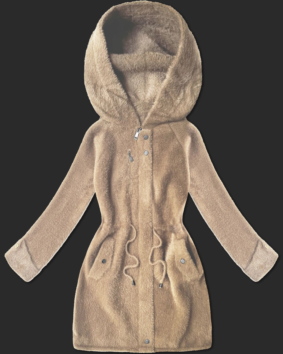 Světle béžová vlněná bunda typu alpaka s kapucí model 21482431 - MHM