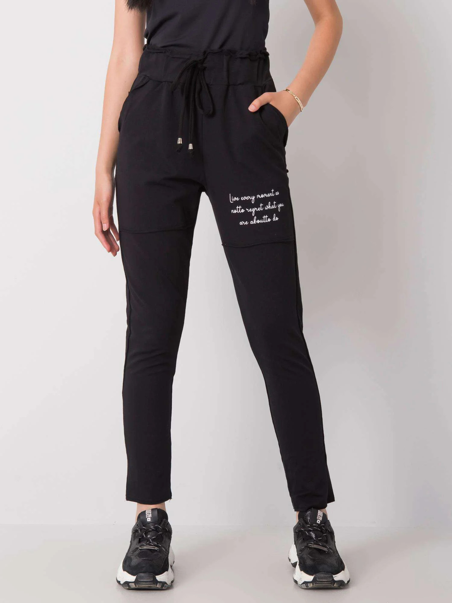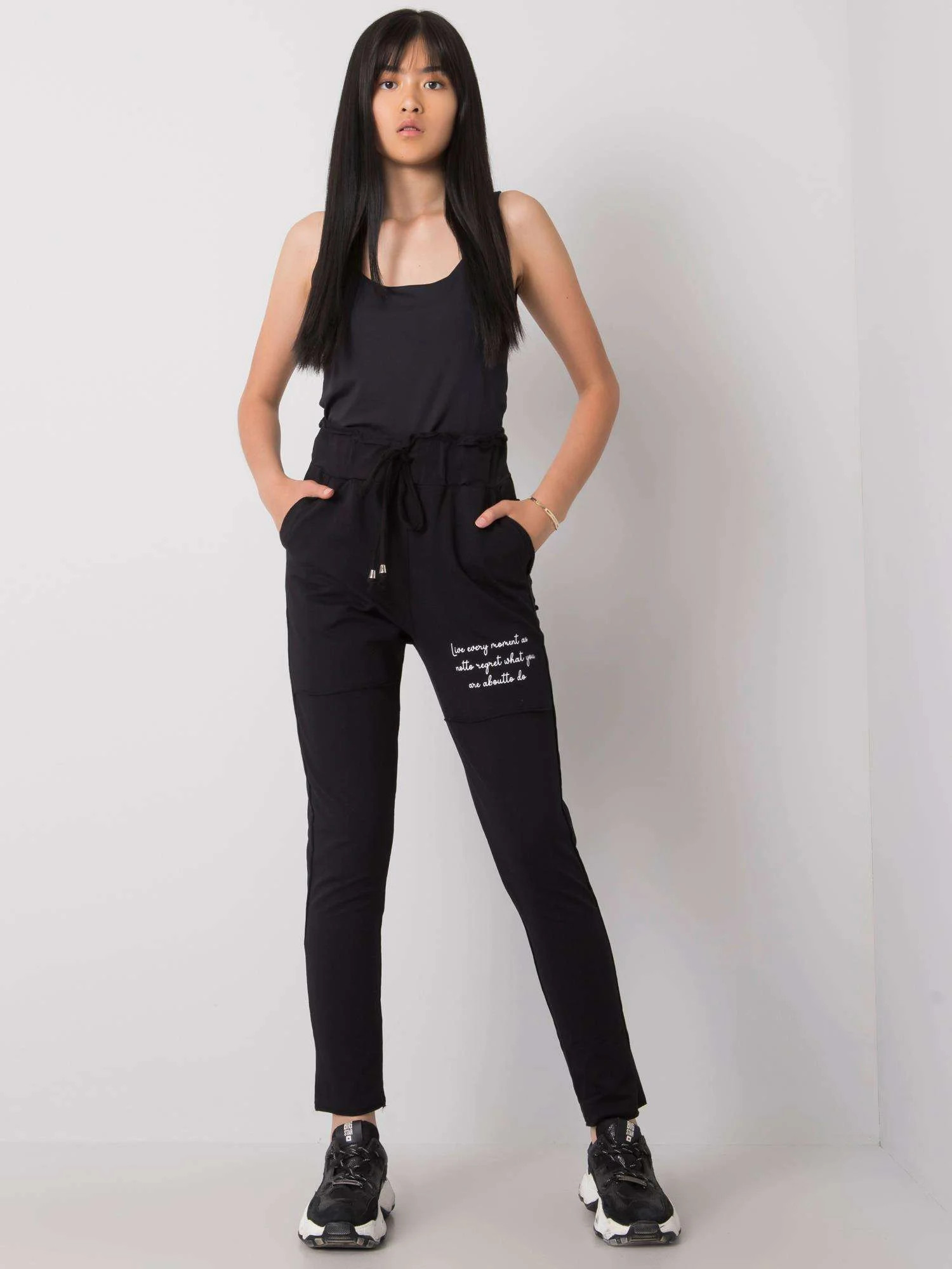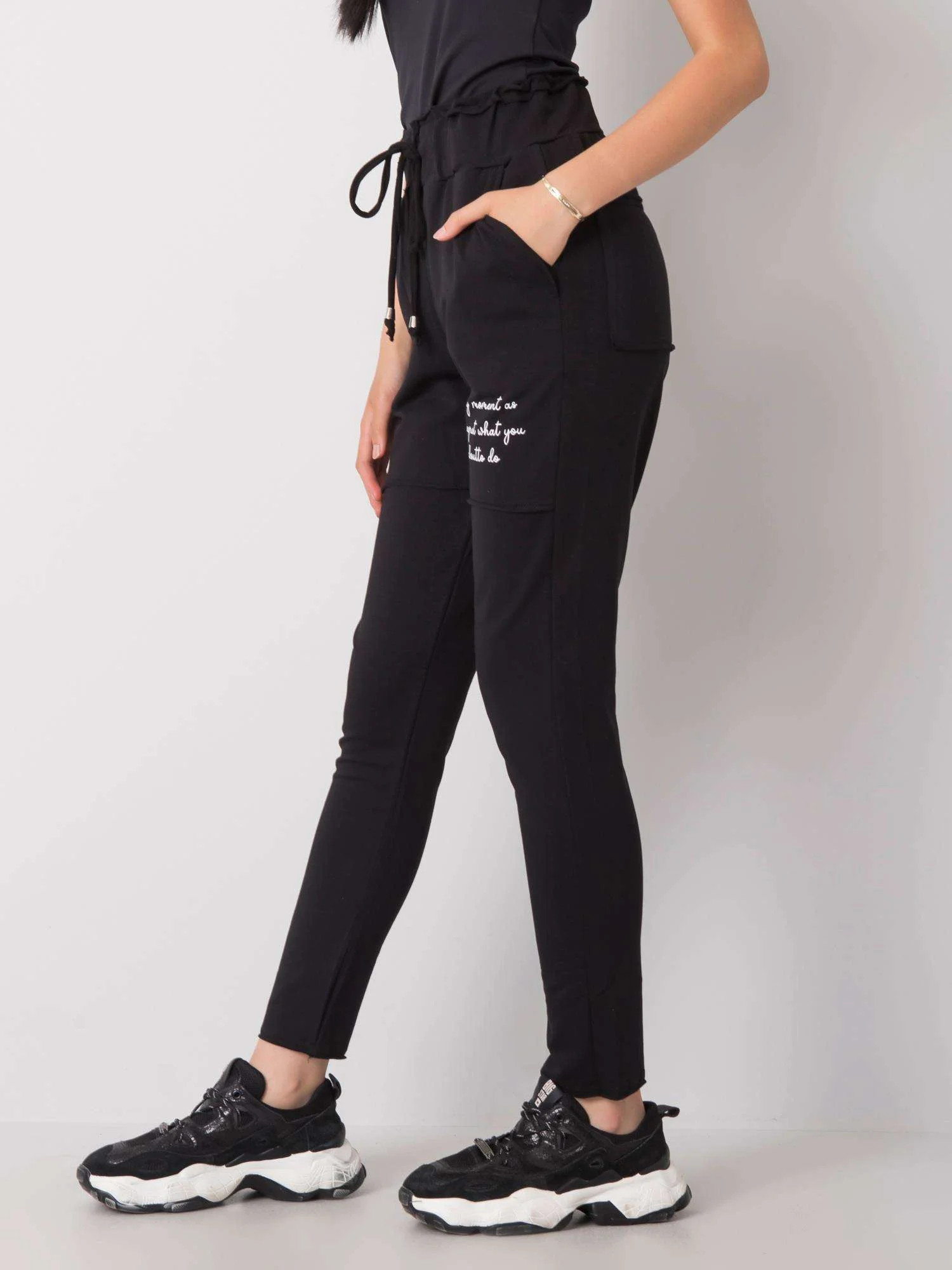 Černé tepláky s kapsami.