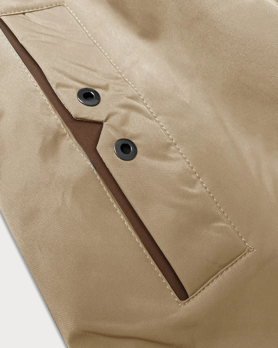 Bunda je zateplená tenkou vrstvou syntetické péřové výplně, má dvě kapsy bez zapínání a zapíná se zipem a panelem s patentkami. Model má kapuci, kterou není možné odepnout. V pase modelu je stahující šňůrka. Ve spodní části bundy jsou na bocích rozparky se zapínáním na patentky. Bunda má délku do poloviny stehen.
