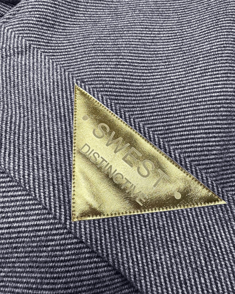 Kabát má jednoduchý střih, má klopy, pásek pro zavazování, dvě kapsy bez zapínání a zapíná se zlatými knoflíky. Model má délku do poloviny lýtek.