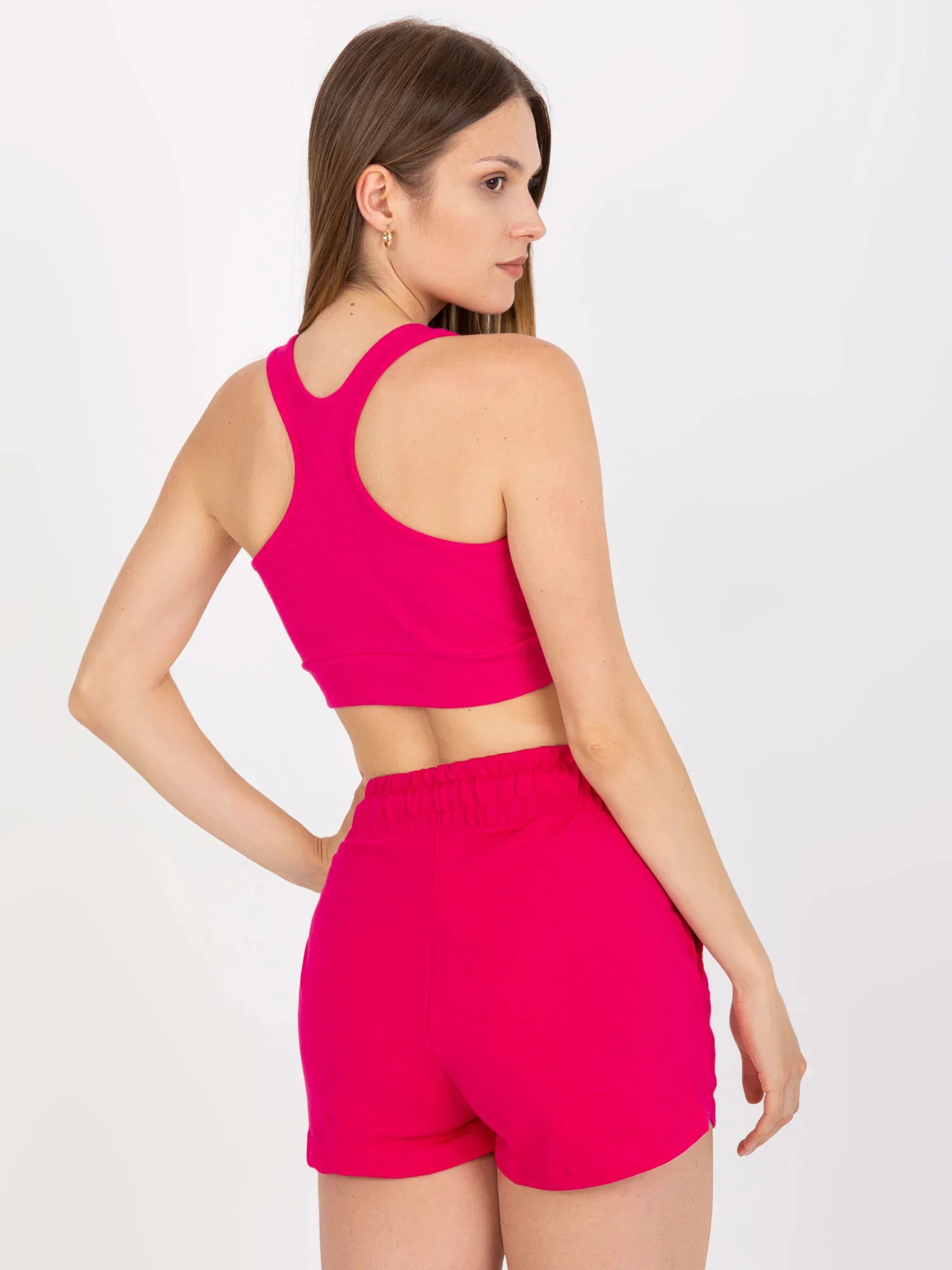 Souprava s kalhotami s vysokým pasem růžové neonové barvy