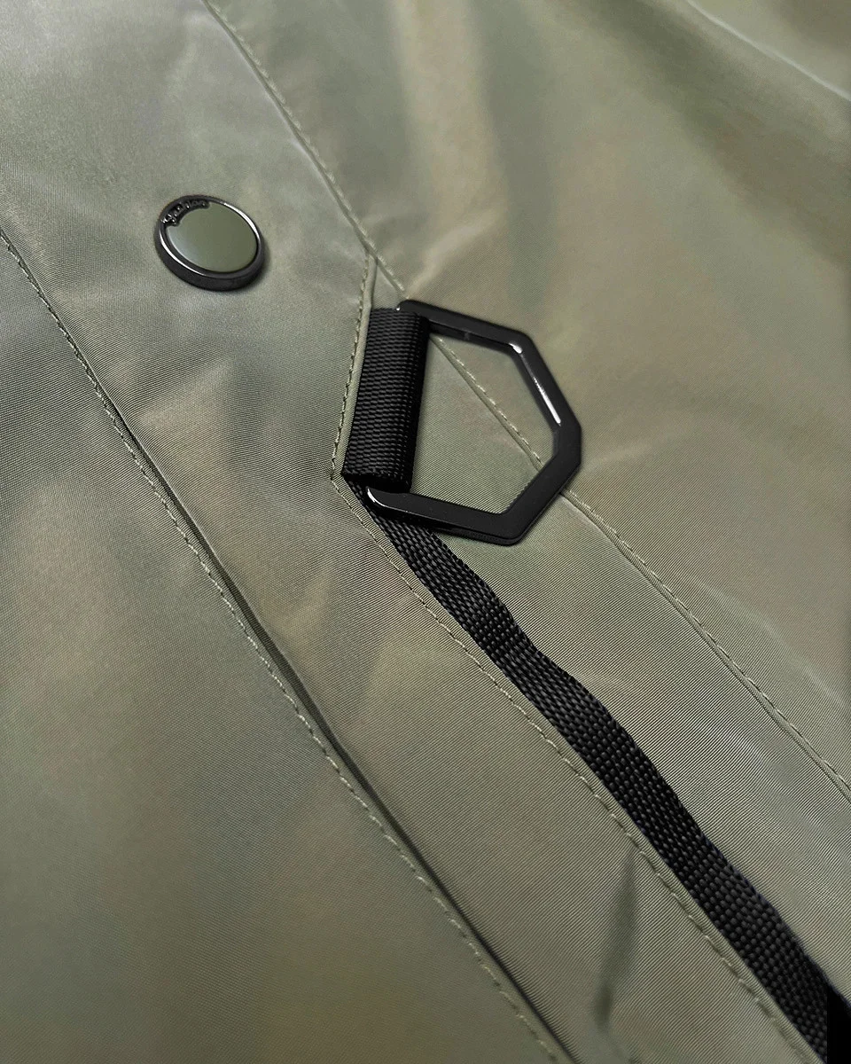 Bunda je zateplená tenkou vrstvou syntetické péřové výplně, má dvě kapsy se zapínáním na patentku a jednu vnitřní kapsu a zapíná se dvousměrným zipem. Model má kapuci, kterou není možné odepnout. V pase modelu je uvnitř stahující šňůrka. Bunda má délku do poloviny stehen.
