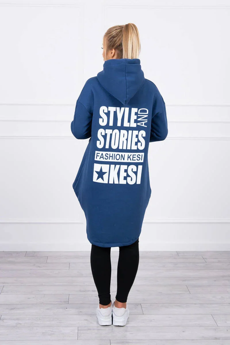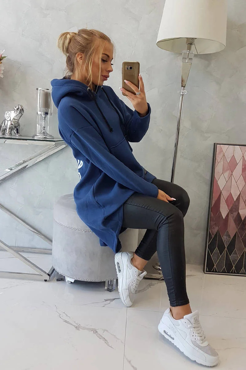 Zateplená mikina s dlouhými zády a kapucí, tmavě modrá