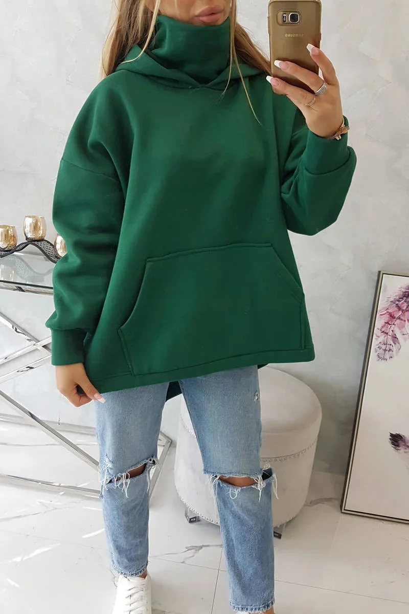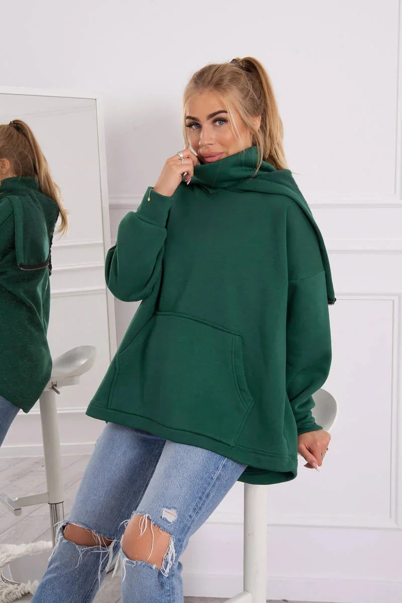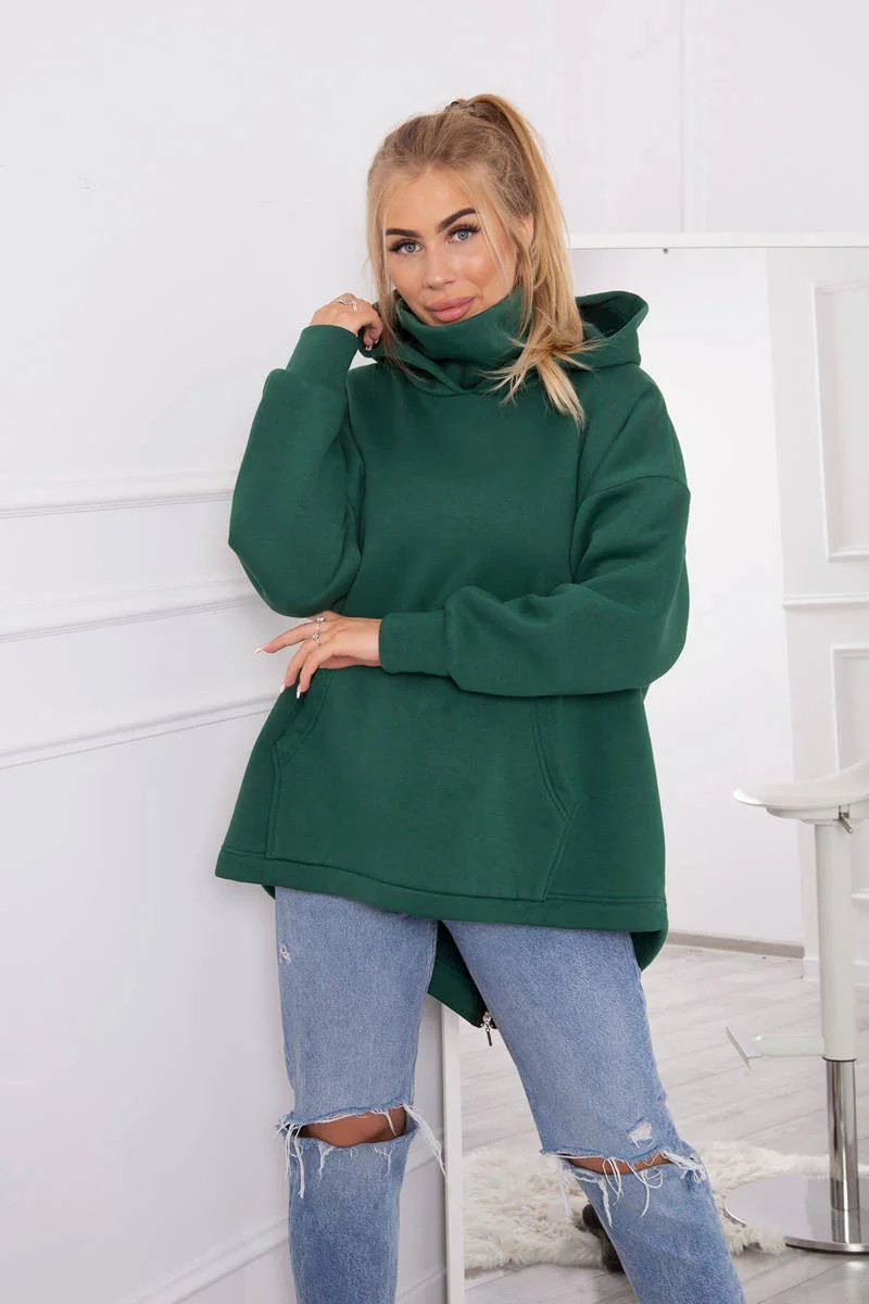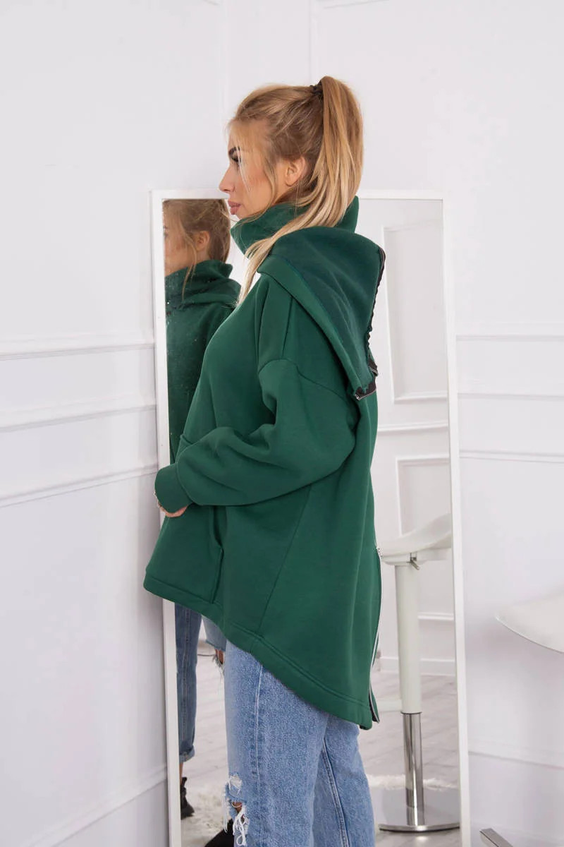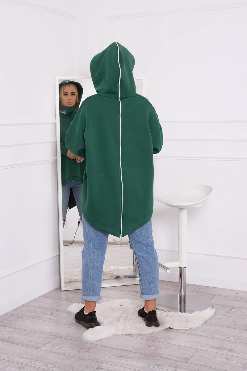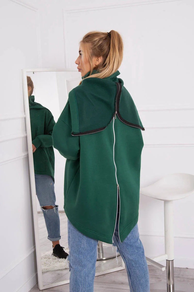Zateplená mikina se zipem na zádech tmavě zelená