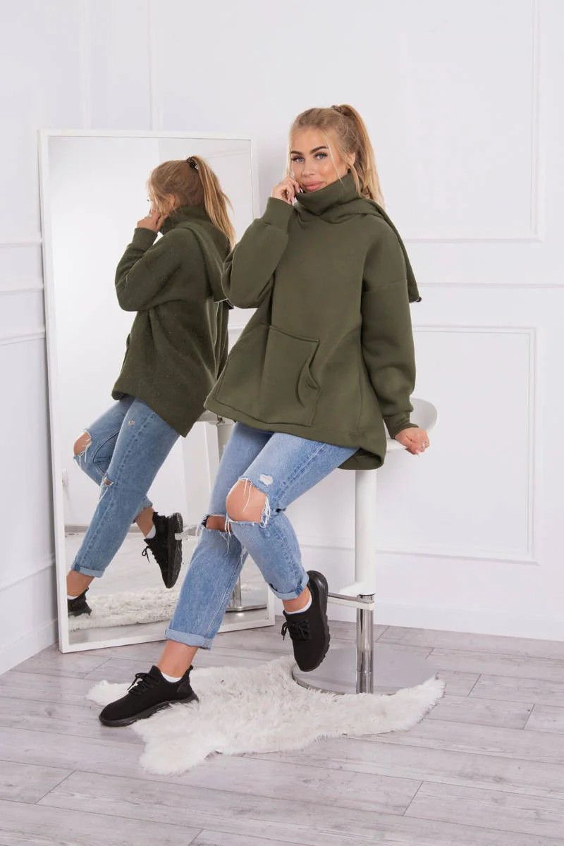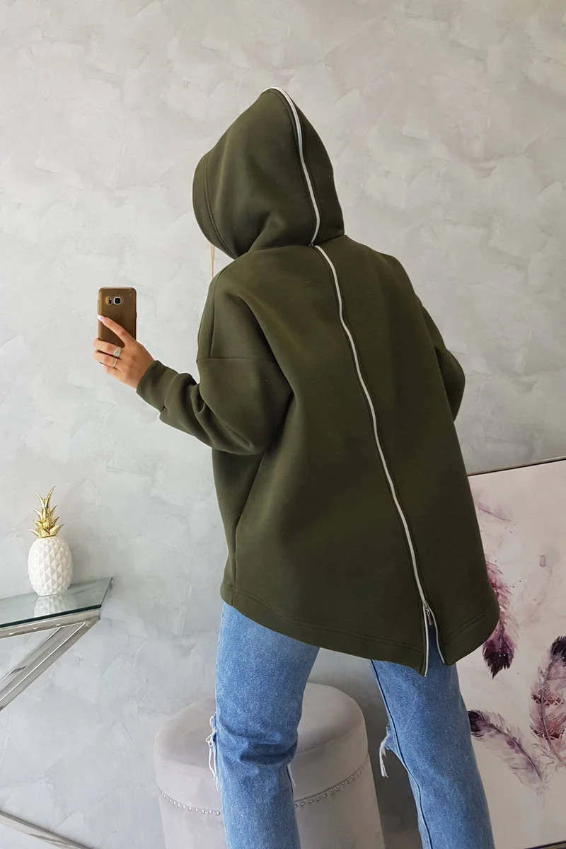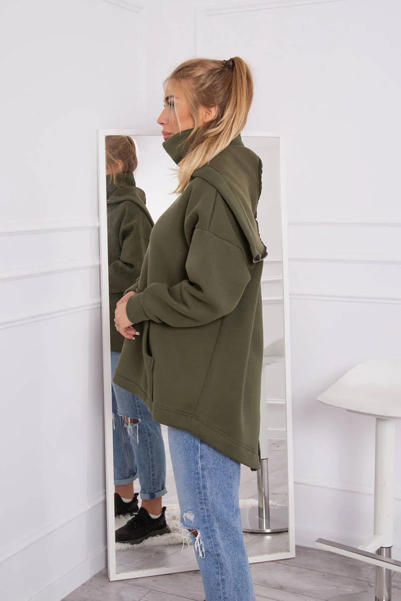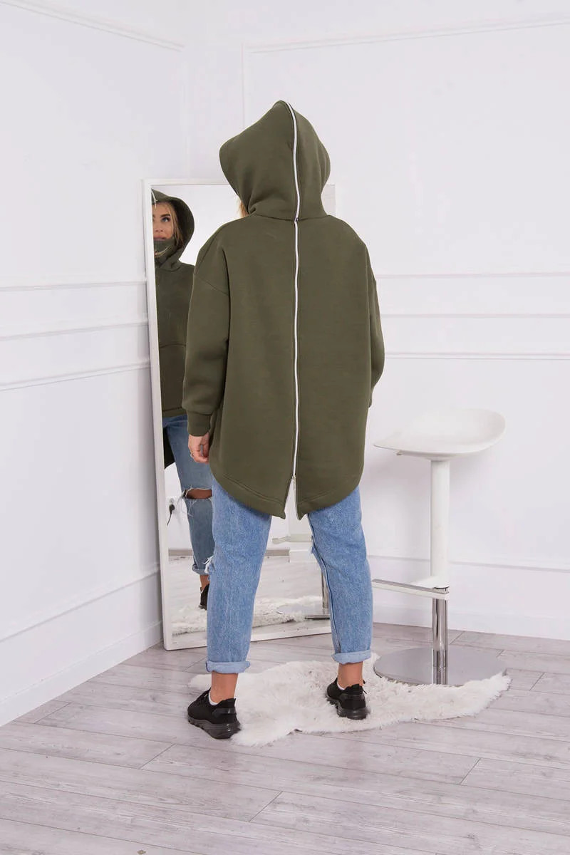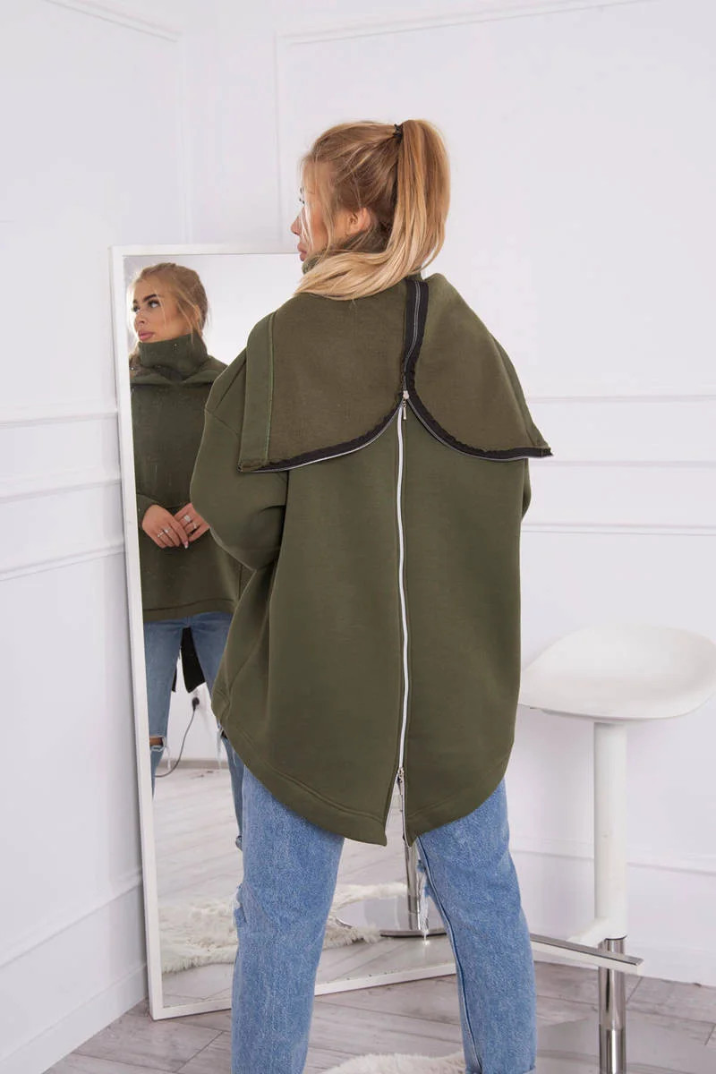Zateplená mikina se zipem na zádech v barvě khaki