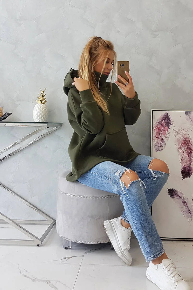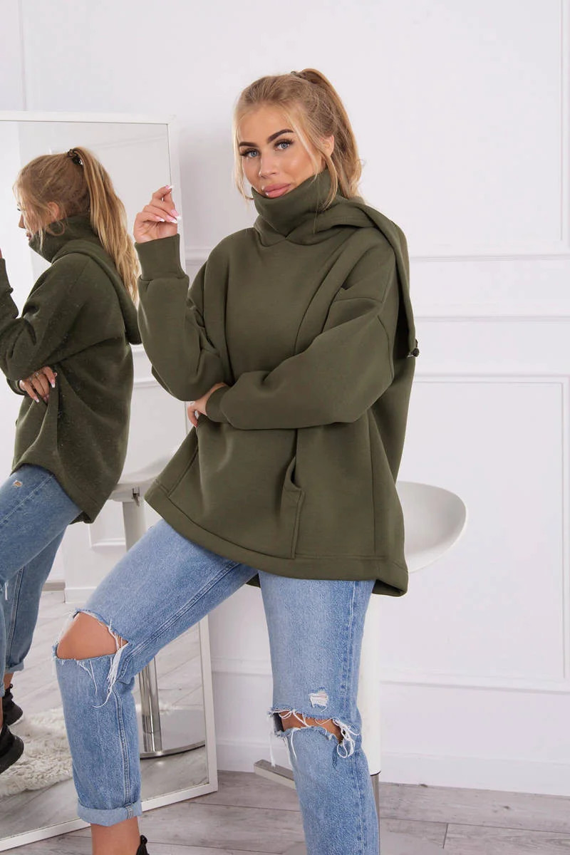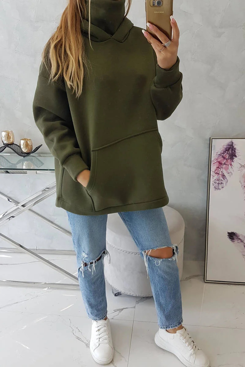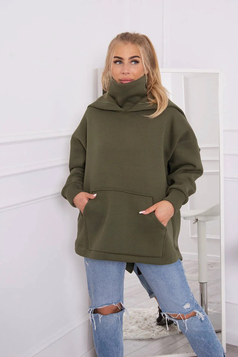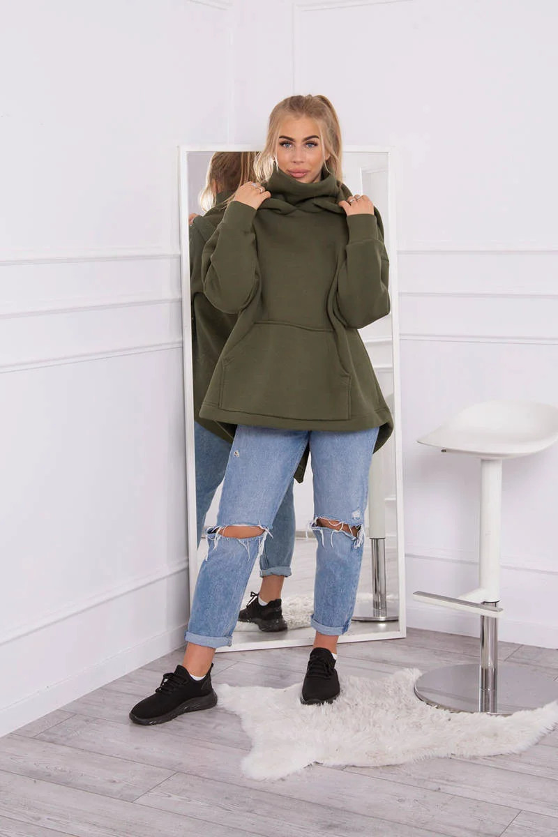 Zateplená mikina se zipem na zádech v barvě khaki