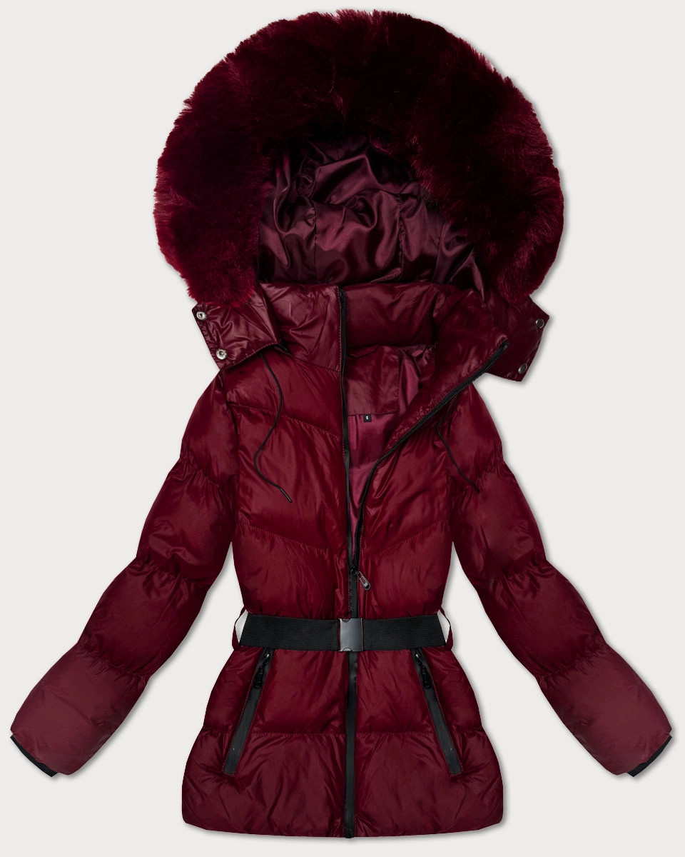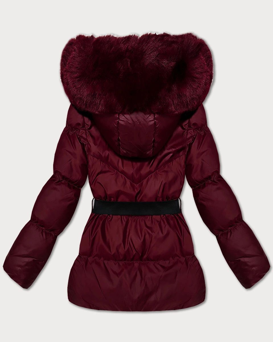 Zimní bunda ve vínové bordó barvě s kapucí a s opaskem model 21479129 - J.STYLE